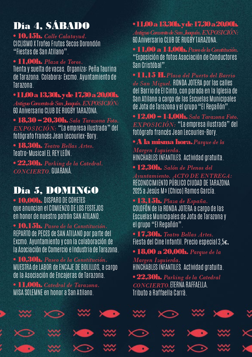 10,15 H. Paseo de la Constitución REPARTO de PECES de SAN ATILANO, por parte del Excmo. Ayuntamiento y con la colaboración de la Asociación de Comercio e Industria de Tarazona.
