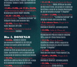 11,15 H. Inicio desde la Plaza del Puerto del Barrio de San Miguel de la RONDA JOTERA. por las calles del Barrio del El Cinto, con parada en la Iglesia de San Atilano a cargo de las Escuelas Municipales de Jota de Tarazona y el grupo “El Regañón”-