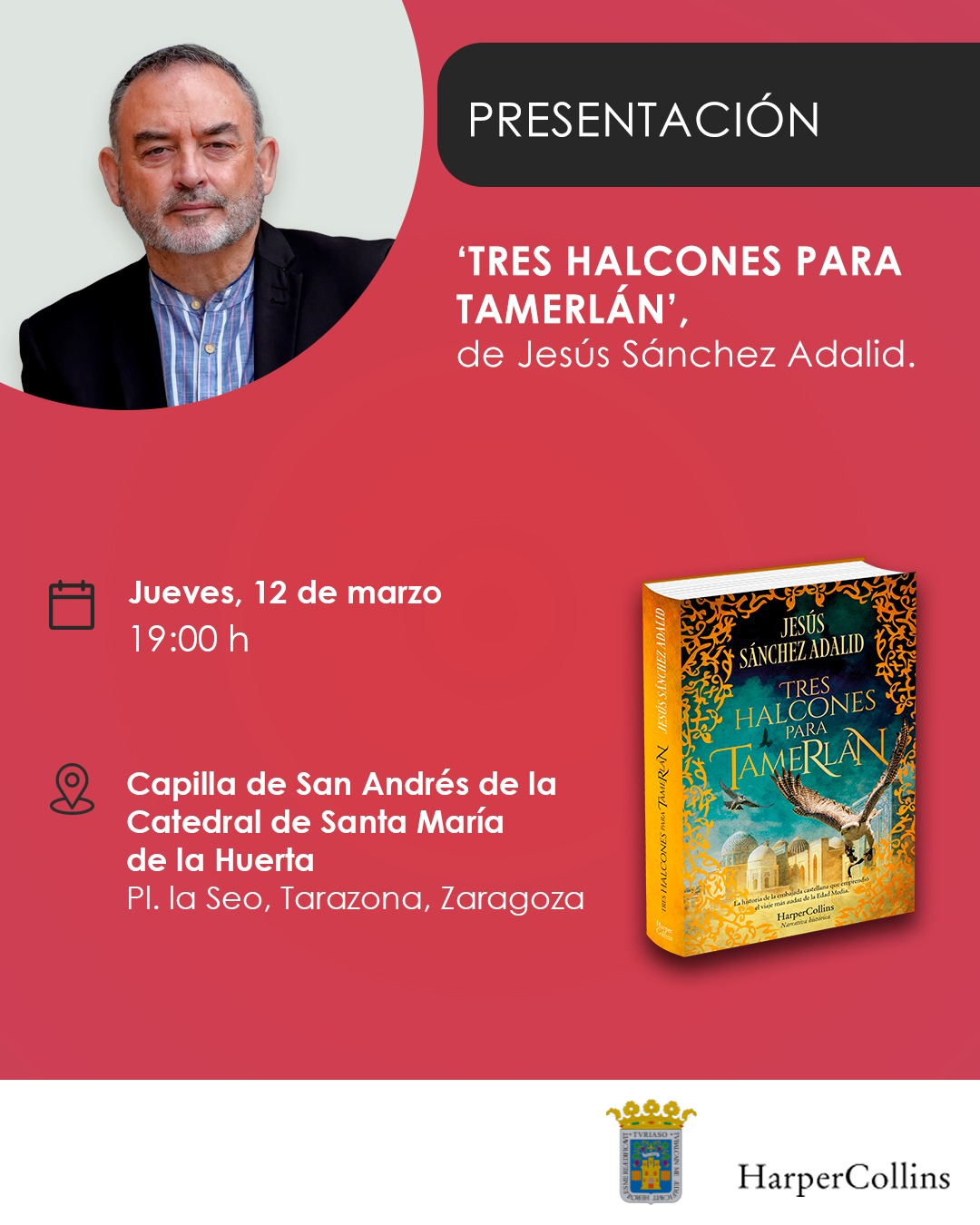 El próximo jueves 12 a las 19:00 horas, la Capilla de San Andrés de la Catedral acogerá la presentación de la nueva novela de Jesús Sánchez Adalid, Tres halcones para Tamerlán.